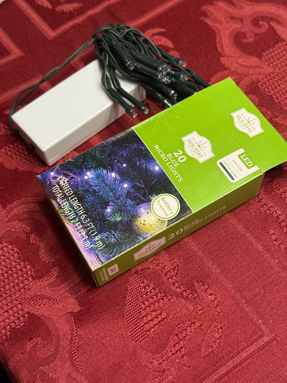 Left: a typical mini-LED set powered by 2xAA batteries (white enclosure). Right: D1 minigadget in action.